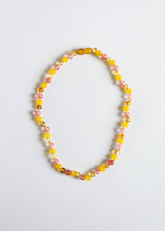 Polished Honey Baltic Amber + Honeysuckle Gemstone Necklace