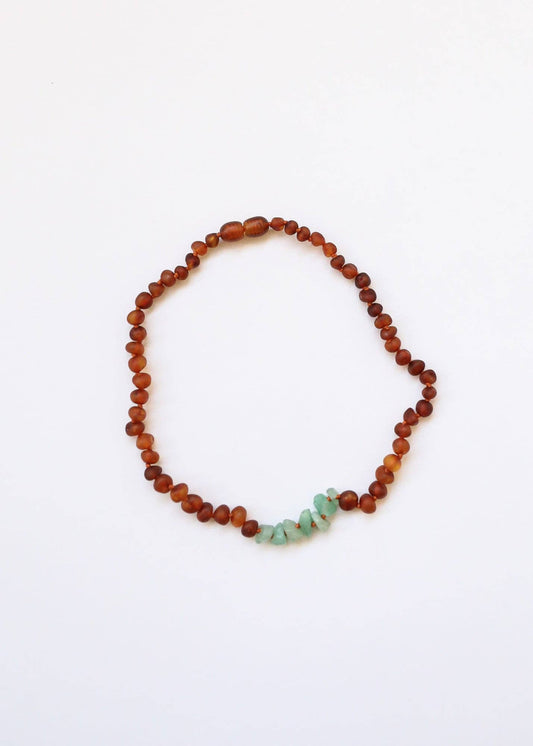 Raw Cognac Baltic Amber + Raw Aventurine Necklace